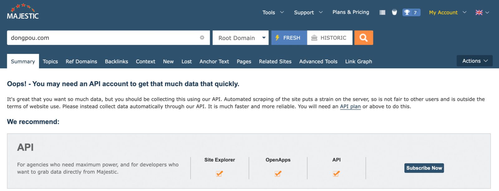 Majestic을 사용하다 보면 아래와 같은 메세지가 보일 때가 있습니다. 아무래도 PBN을 검색하시다 보면 하루에 너무나도 많은양의 도메인들을 복사 붙여넣기 해서…